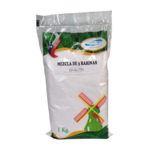 La mezcla de 3 harinas es un producto especialmente diseñado para reemplazar la harina de trigo en la preparación de masas y otros alimentos sin gluten. Está compuesta por harina de arroz, almidón de mandioca y almidón de maíz, ofreciendo una alternativa sin gluten ideal para personas con celiaquía y dietas especiales.